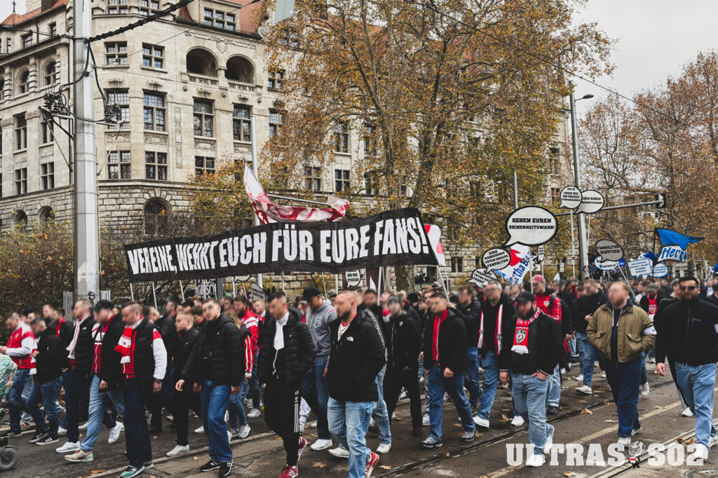 Nach dem erfolgreichen Sonntag in Leipzig ist völlig klar, dass wir den Protest nun zurück in die Stadien und unsere Kurven tragen müssen. Es bleiben uns noch wenige Wochen, um den Druck hochzuhalten und den Law-and-Order-Politikern die Stirn zu bieten. Ihr könnt euch gewiss sein, dass wir den Spirit der Demonstration aufgenommen haben und bereits tief in den Planungen stecken, wie wir die nächsten Wochen angehen. Um es Politik, Verbänden und Co. mit einem von uns bereits beim Investoren-Protest genutzten Wortlaut zu sagen: Ihr werdet von uns hören!